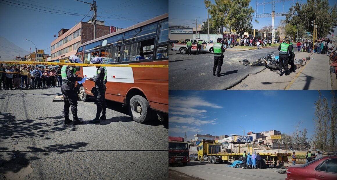 Dos motociclistas y un adulto mayor fallecieron en accidentes de tránsito registrados en la vía de evitamiento, la Av. Aviación y el Centro de Arequipa. El Ministerio Público demoró más de 4 horas en llegar a la zona de los accidentes para el levantamiento de los cadáveres.