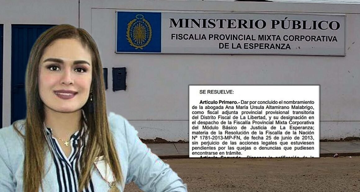 El Ministerio Público ha decidido destituir a Ana María Altamirano Malabrigo de su cargo como fiscal adjunta provincial provisional de La Esperanza, Trujillo. La decisión sigue a un caso ampliamente cuestionado. En este la fiscal fue criticada por su manejo inadecuado de un proceso de flagrancia que resultó en la liberación de varios detenido. Estos estaban implicados en un robo a mano armada. La controversia cobró fuerza después de la difusión del incidente en el programa dominical «Punto Final».