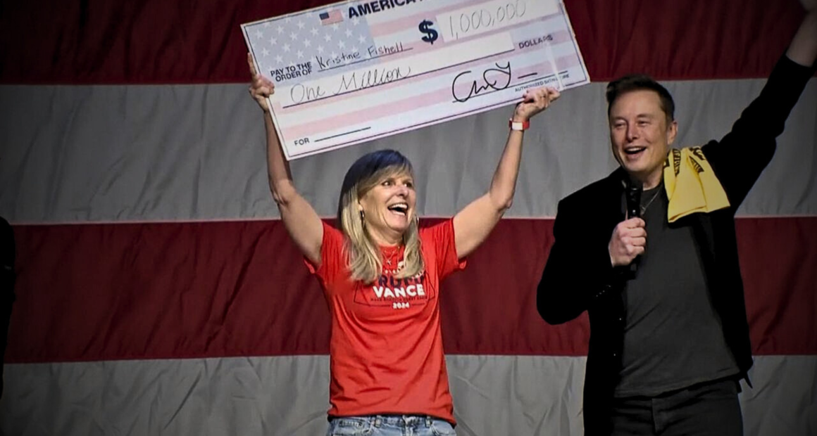 Una de las tácticas más polémicas de Musk consiste en sortear dinero entre los votantes que firman una petición en su Comité de Acción Política (PAC) «America». Ya ha entregado dos pagos de un millón de dólares y ha prometido continuar hasta las elecciones del 5 de noviembre. Los votantes deben firmar una petición en defensa de la primera y segunda enmienda de la Constitución para participar.