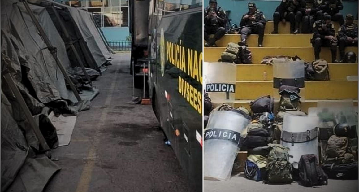 Efectivos policiales enviados desde varias regiones para contener el paro de transportistas reportan falta de viáticos completos, alojamiento inadecuado y precariedad en sus condiciones de trabajo.