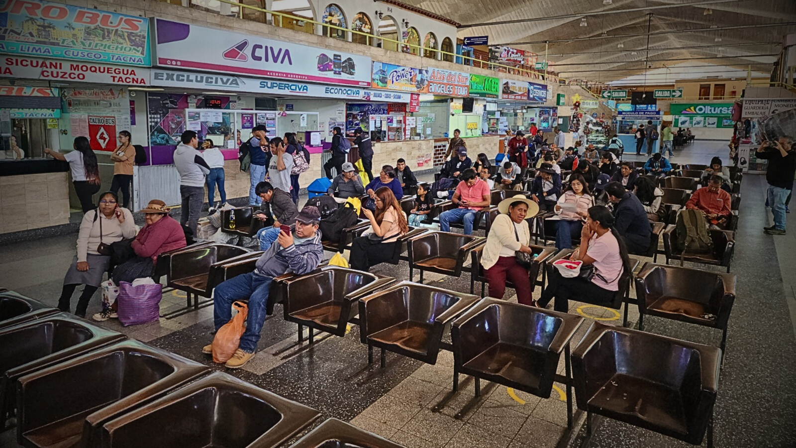 A pesar de las condiciones expuestas por los trabajadores de las empresas interprovinciales en el terminal terrestre de Arequipa, muchas personas continúan comprando boletos para trasladarse a Lima, aceptando las horas extras de espera causadas por los bloqueos en la carretera.
