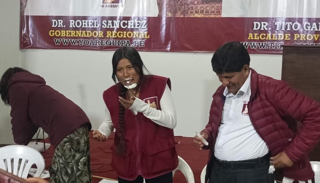 Tres miembros de un clan familiar se benefician con contratos durante la gestión de Rohel Sánchez. Una de ellas fue militante activa de Yo Arequipa e incluso celebró su cumpleaños acompañada del gobernador en 2022. Rohel aparece en la foto agarrando la vela.