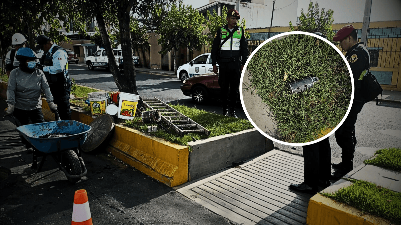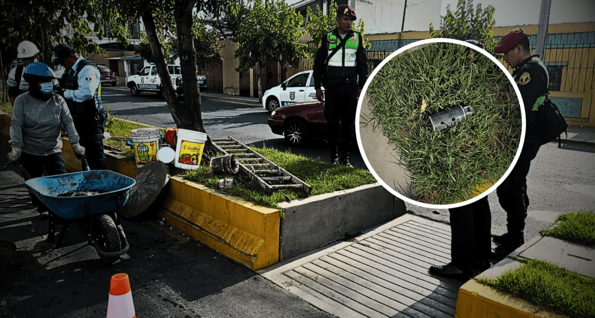 Pensaron que era una bomba peligrosa, pero afortunadamente fue una falsa alarma. Uno de los obreros del área de limpieza de la Municipalidad Distrital de José Luis Bustamante y Rivero halló un artefacto desconocido en el área verde de la berma central de la avenida Dolores, a la altura de Sur Motors. De inmediato alertó a sus compañeros que tampoco podían identificar si el objeto podría ser un peligro para su integridad.