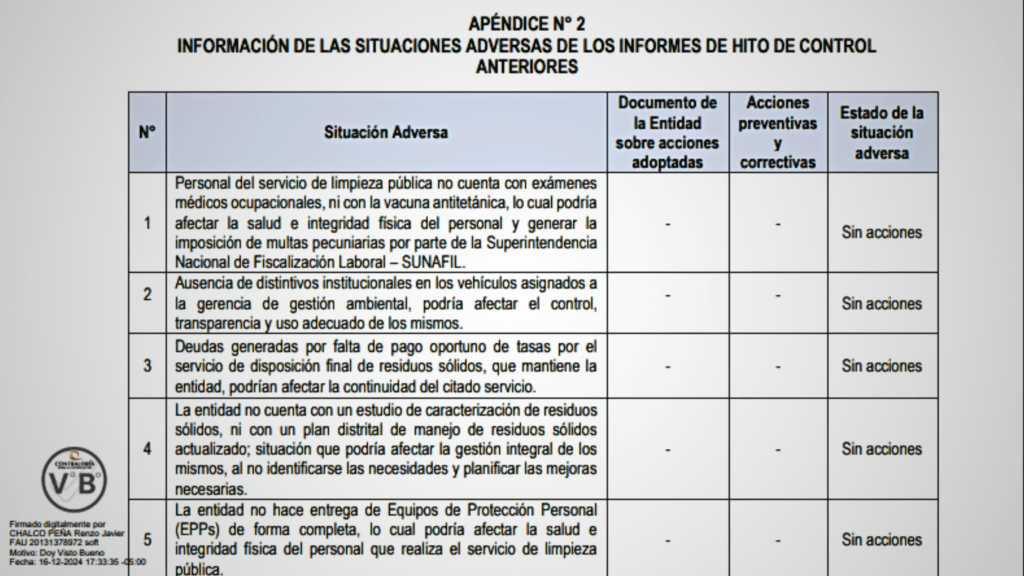 A pesar de las constantes observaciones y advertencias de la Contraloría, la Municipalidad de Miraflores continúa sin corregir las deficiencias en el servicio de limpieza pública, evidenciando una gestión ineficaz que pone en peligro la salud de sus trabajadores y la calidad del servicio para los vecinos.