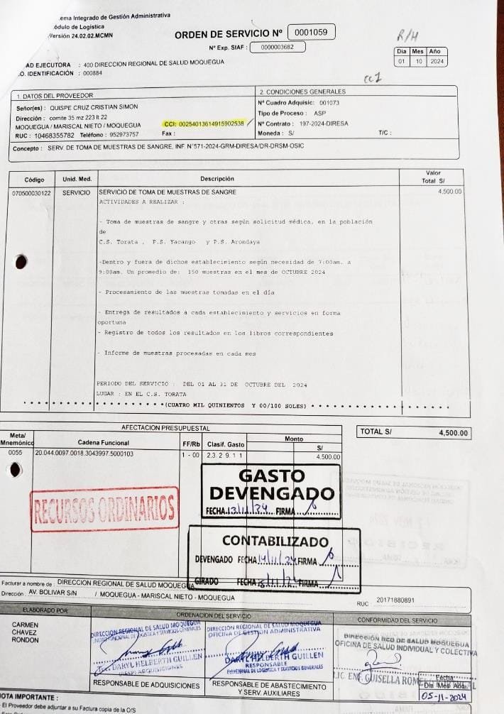 La Contraloría General de la República expuso deficiencias significativas en las acciones de la Dirección Regional de Salud (DIRESA) de Moquegua para detectar y tratar a ciudadanos afectados por metales pesados. Según el Informe de Visita de Control N.º 060-2024-OCI/0829-SVC, no se cumplió con los objetivos planteados en su totalidad.