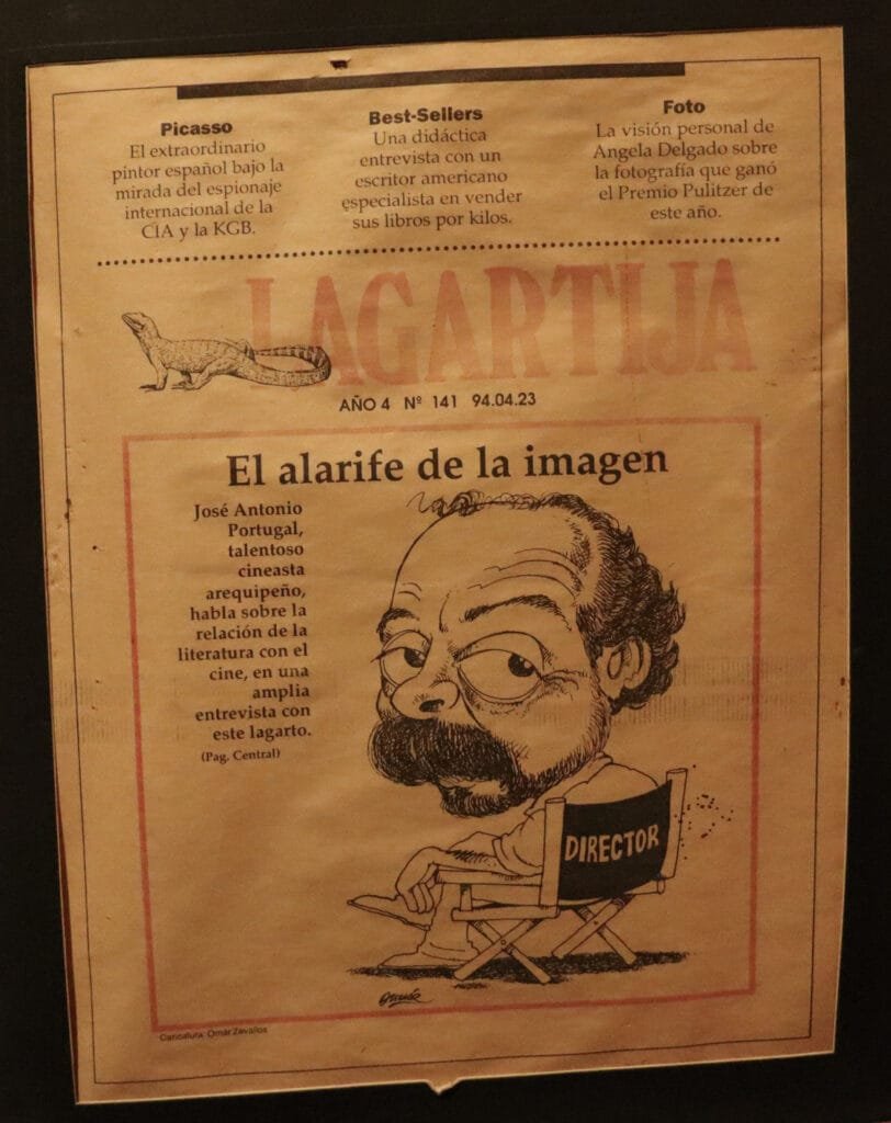 La anterior escena mal descrita corresponde a una confesión que le hice a mi amigo José Antonio Portugal, cineasta, arequipeño, inconfundible de la generación 70 en el Perú que tiene aproximadamente 40 obras entre cortometrajes, mediometrajes y documentales, de las cuales se han perdido más de la mitad. Y que radica de forma continua en Arequipa desde hace algunos años.