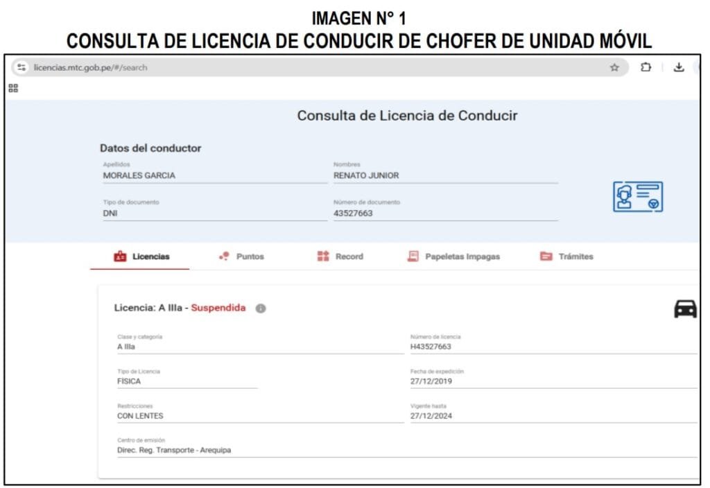 El 3 de diciembre de 2024, durante una inspección encabezada por el jefe zonal Marco Antonio Medina Quiroga y la supervisora del Consorcio Copemane, Leslie Tassara, la comisión de control descubrió intentos de engaño. El chofer de la cuadrilla, Renato Junior Morales García, no presentó su licencia de conducir. Indicó que había olvidado su licencia en un taller, pero las verificaciones confirmaron que esta estaba suspendida desde abril de 2024.