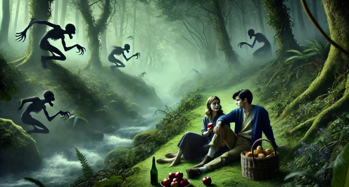 A Facundo le costó entender que no existe un camino de retorno a la felicidad infinita del último fin de semana. Él e Isabel pasearon por el sendero del bosque espeso que invita, con voz melodiosa de viento, arrollo y ramaje, a aventurarse en su exótica profundidad. Corretearon, se echaron en el pasto, comieron manzanas acarameladas y bebieron una botella de vino. Al recordar el paseo la posibilidad de la maldición se apoderó de él: sí, fueron ellas, las antiguas criaturas de nombres impronunciables, las que habitan en ese territorio prohibido, quienes los señalaron con sus dedos torcidos y sus susurros de humo llamaron a la desdicha.