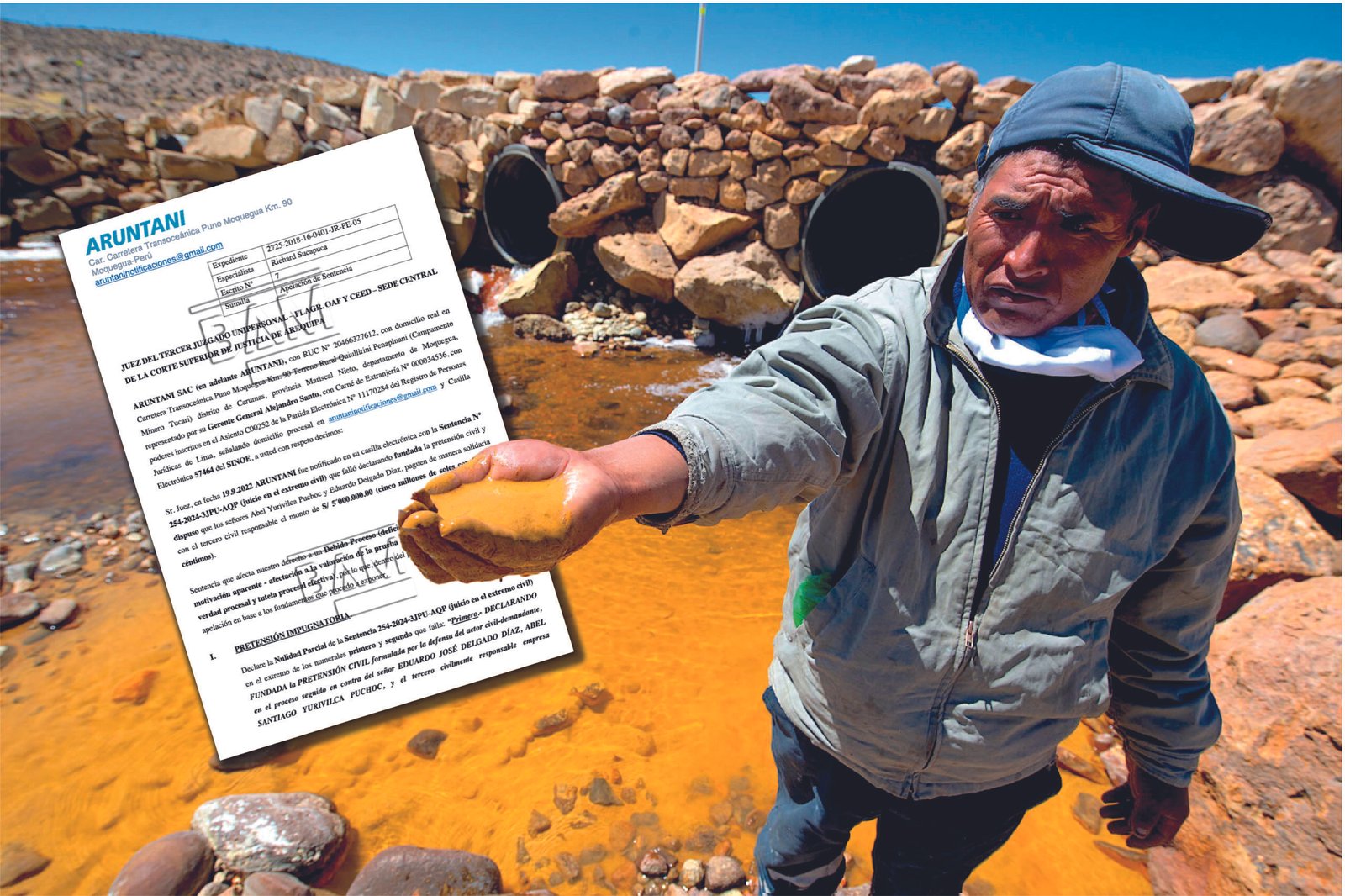 La minera Aruntani ha presentado una apelación para anular la sentencia que le exige el pago de 5 millones de soles. Esto por la contaminación ambiental provocada por filtraciones en su proyecto Florencia Tucari, ubicado en Carumas, Moquegua. Junto a la empresa, también fueron sancionados dos de sus exdirectivos, Eduardo Delgado y Abel Yurivilca. Estos desempeñaron roles clave en la operación minera.