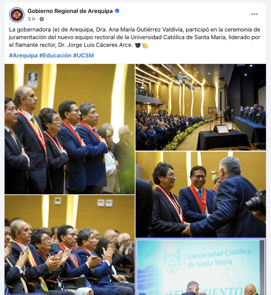 Al respecto, Revelación.pe consultó con la propia Ana María Gutiérrez. Ella respondió por Whatsapp. Señaló que Sánchez asistió porque «lo invitaron personalmente». Mientras que ella estuvo en Arequipa en acudiendo a la imposición de cargo del nuevo rector de la Universidad Católica de Santa María, en su calidad de gobernadora encargada.