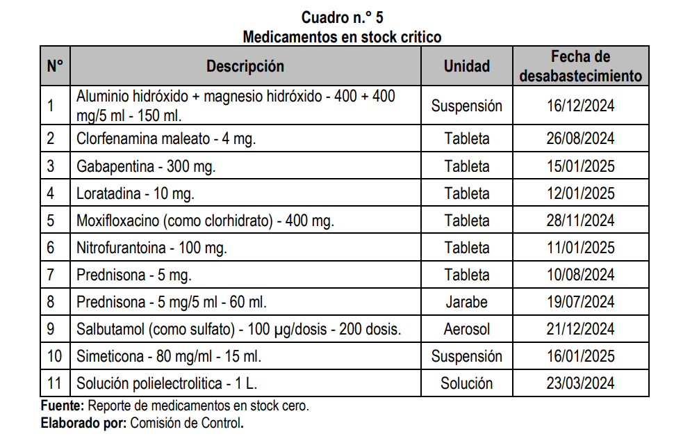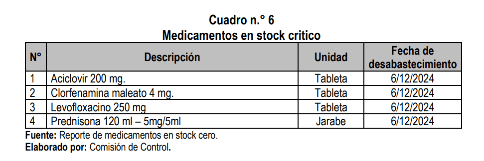A esto hay que sumarle que todos los centros de salud mencionados no cuentan con medicamentos esenciales. En varios casos el desabastecimiento data de más de 6 meses. Por ejemplo, en Edificadores Misti no hay clorfenamina desde agosto del año pasado, tampoco solución polielectrolítica desde marzo. En el centro de Salud de Miraflores no hay retinol también desde marzo de 2024. Los almacenes lucen desordenados por el hacinamiento de los enseres en espacios reducidos en las postas de Edificadores Misti y Mateo Pumacahua.