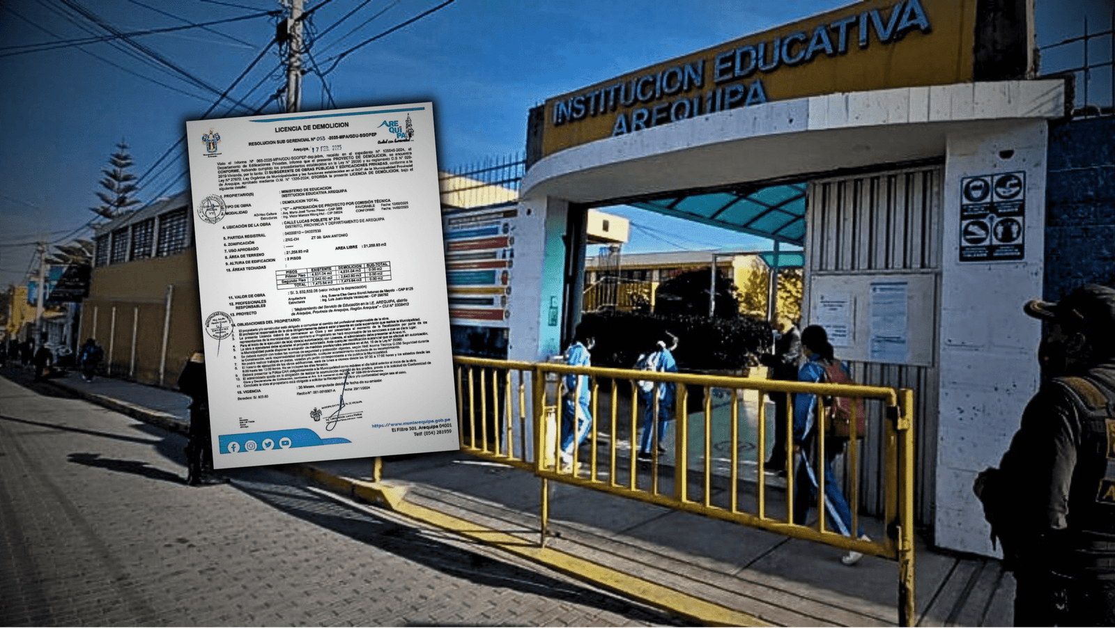 La Municipalidad Provincial de Arequipa (MPA) aprobó la licencia de demolición del Colegio Arequipa, ubicado en la calle Lucas Poblete 214, mediante la resolución N° 053 emitida el 17 de febrero. Este permiso permitirá derribar el inmueble de dos pisos, que alberga aproximadamente 20 aulas, para dar paso a la construcción de un nuevo centro educativo.