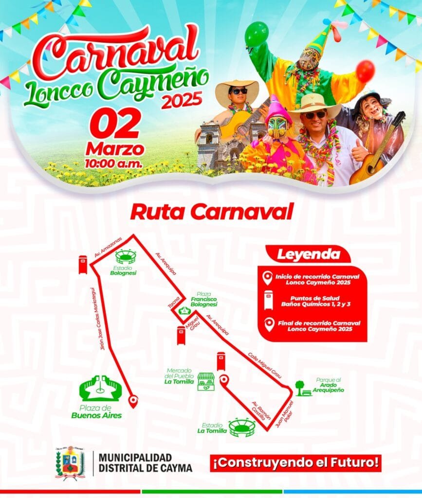 Este domingo 2 de marzo, el distrito de Cayma, en Arequipa, vivirá el Carnaval Loncco Caymeño 2025, una festividad que combina tradición, música y danza. El evento, organizado por la Municipalidad Distrital de Cayma, iniciará a las 10:00 a.m. y se transmitirá en vivo a través de la página de Facebook de la institución.