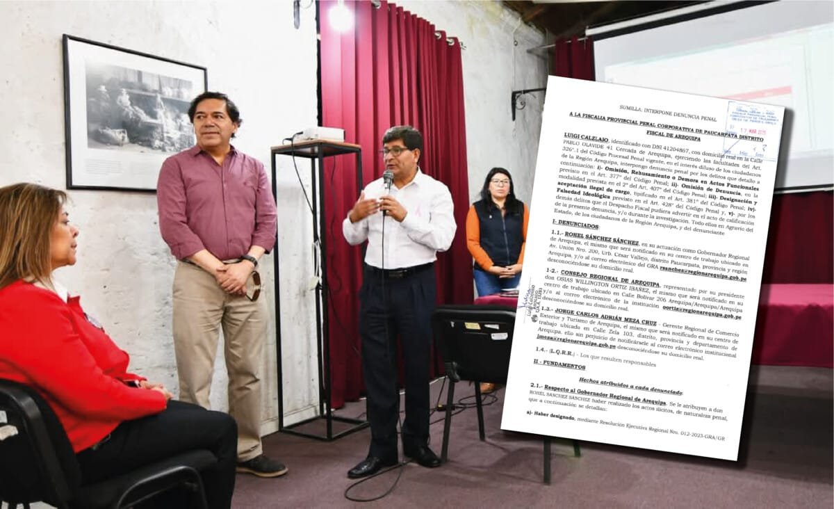 El Ministerio Público tiene en sus manos una nueva denuncia penal contra el gobernador Rohel Sánchez y otros funcionarios del Gobierno Regional de Arequipa (GRA). La acusación se centra en la designación al cargo presuntamente irregular del gerente de Comercio Exterior y Turismo (GERCETUR), Jorge Carlos Adrián Meza Cruz. El funcionario habría consignado información falsa en su declaración jurada de intereses, a fin de acreditar todos requisitos para cumplir el perfil que exige su plaza.