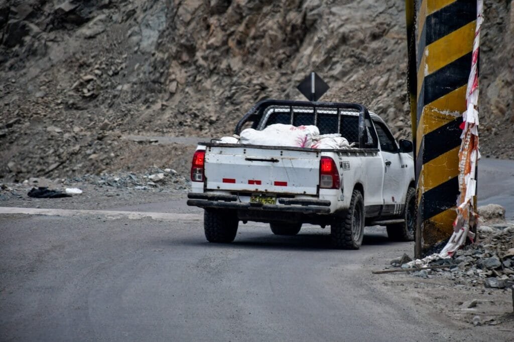 En este pueblo minero, cada cinco minutos en promedio baja una camioneta 4×4 cargada con sacos de mineral y de vez en cuando un camión. Al ser calles tan estrechas, sin pavimento y con lodo, es común ver atascos, porque mientras unos vehículos suben con dirección a las minas, otros bajan cargados de mineral o con obreros sobre las carrocerías.