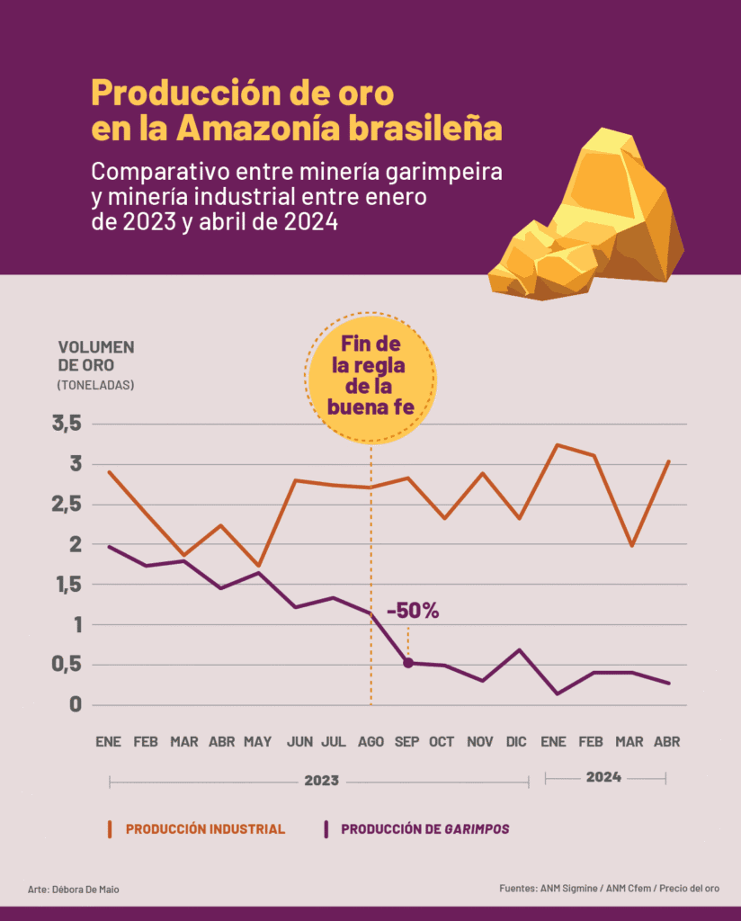 El fin de la llamada “regla de la buena fe” en el comercio de oro en Brasil, señalada por especialistas como una de las principales facilitadoras del contrabando del mineral precioso en el país, llevó a una drástica reducción en los volúmenes declarados de oro extraído de garimpos, o minería artesanal, un año después de su implementación, indicando que las minas legales de garimpeiros (buscadores de minerales preciosos en garimpos) estaban siendo utilizadas para blanquear oro producido de manera irregular.
