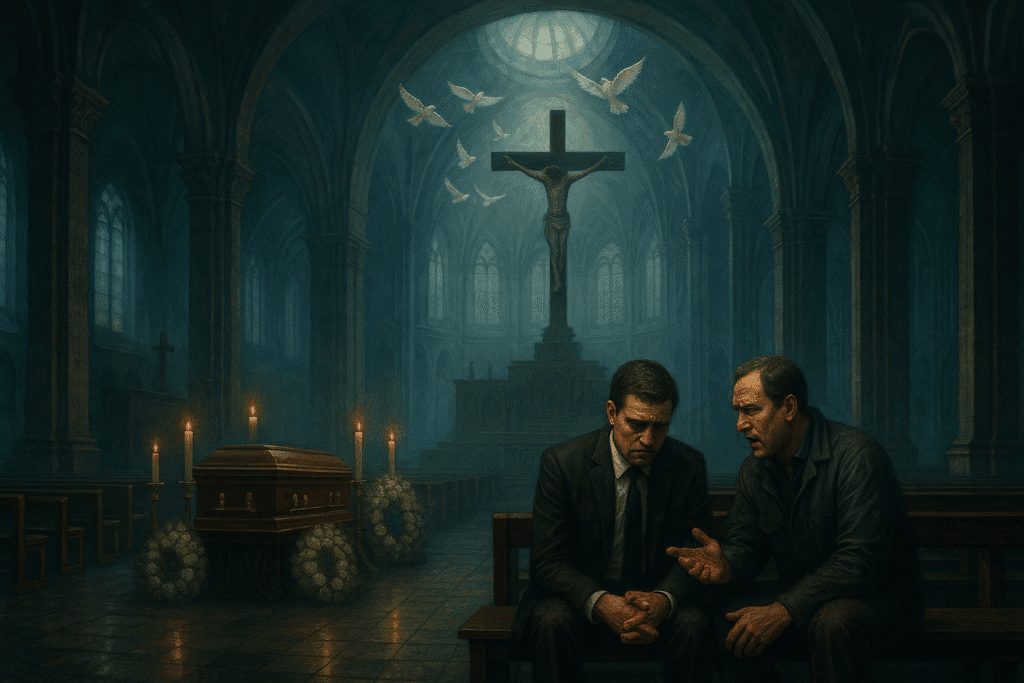 Más avergonzado que asustado Jorge no levantó la cabeza para aclarar la confusión y no vio a Miguel desvanecerse en el aire sagrado de la iglesia, solo oyó los pasos solemnes de los asistentes a la misa y después lo sacudió la mano que cayó sobre su hombro. Estaba seguro, era Ernesto con traje de luto quien lo saludaba para hablar.