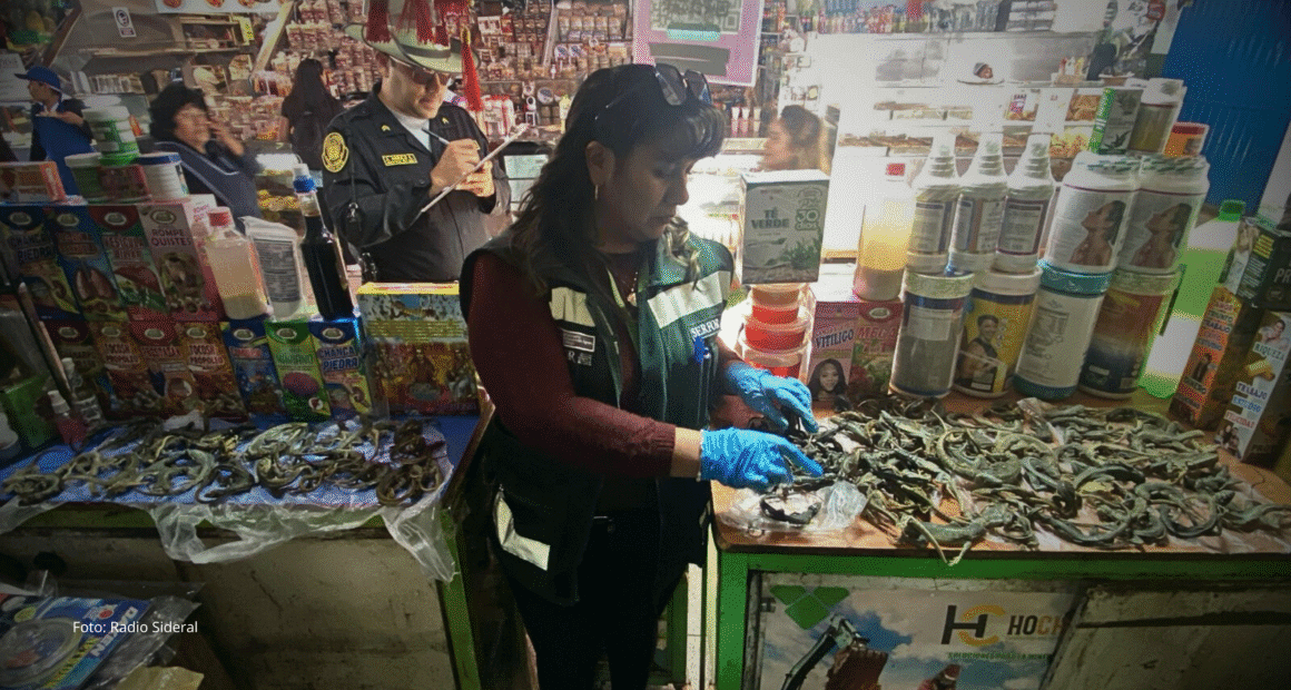 En un operativo conjunto realizado el 3 de junio, el Servicio Nacional Forestal y de Fauna Silvestre (Serfor) y la Policía Nacional intervinieron un puesto del mercado San Camilo, en el Cercado de Arequipa, donde se hallaron 110 lagartijas muertas conservadas en frascos con alcohol. También se encontraron dos culebras.