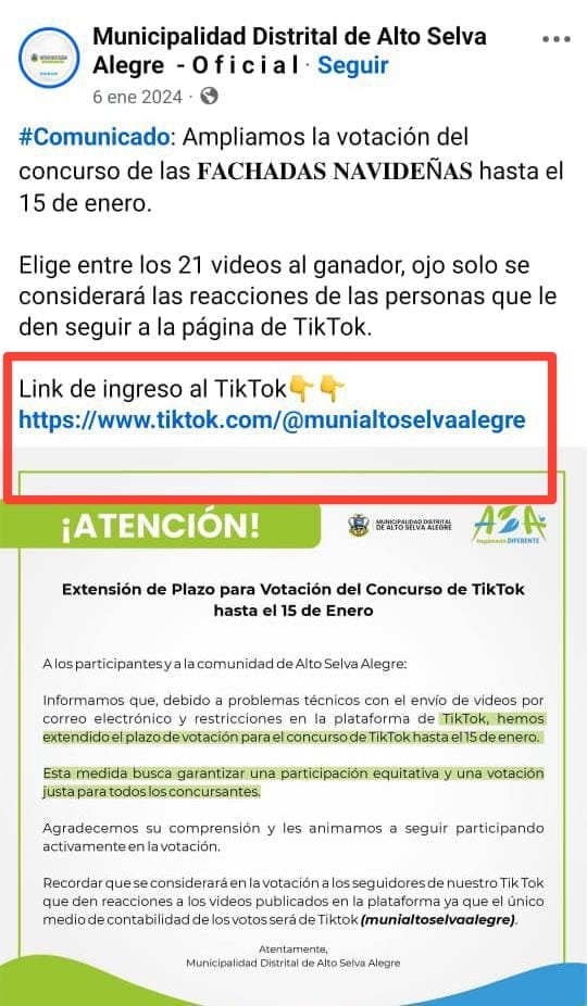 La plataforma de TikTok de la Municipalidad Distrital de Alto Selva Alegre dejó de ser un canal de comunicación institucional para transformarse en un espacio de promoción personal del alcalde Alfredo Benavente Godoy. La repentina modificación incluye el cambio de nombre de la página con miles de seguidores, especialmente pobladores de la jurisdicción selvalegrina.