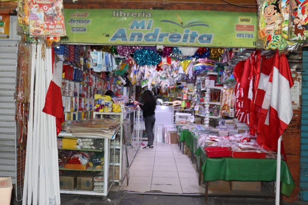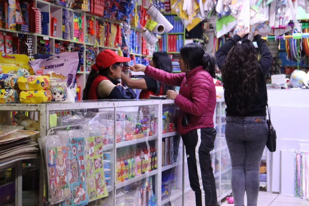 En la librería Mi Andreita, las luces siguen encendidas. Adentro, dos mujeres despachan sin descanso, mientras el bullicio persiste como si el reloj se hubiera detenido.