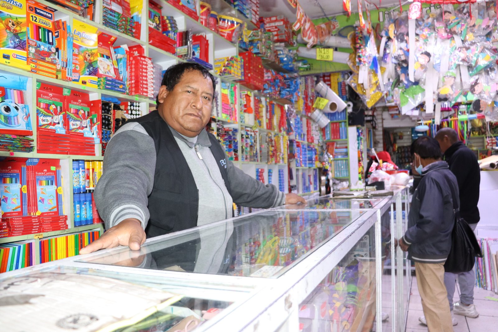 Los clientes aún llegan. Algunos con urgencia, otros por la confianza de saber que él siempre está. Mientras ordena cuadernos, una clienta entra apresurada: