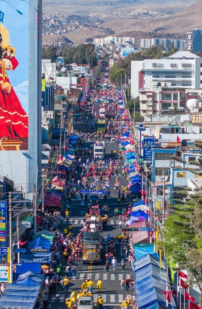 Las calles vibraron con danzas típicas, carros alegóricos y delegaciones que ofrecieron un espectáculo lleno de color, tradición y creatividad, en un recorrido que inició en el óvalo Mariscal Castilla y que estuvo dividido en cuatro agrupamientos.
