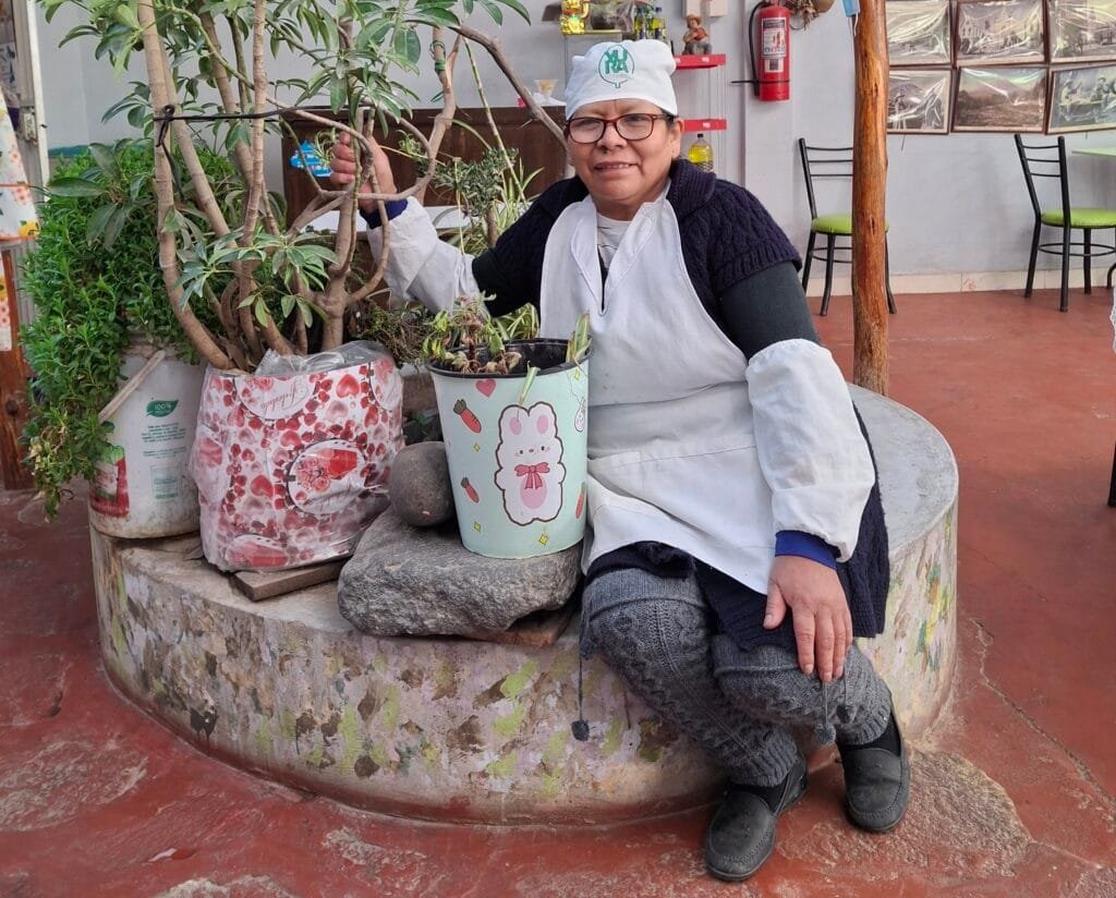 En el patio de su casa, entre macetas y tierra húmeda, crece un pequeño huerto. Allí asoma el rocoto, aunque este año la cosecha fue escasa. “Quizás se cansó de darme”, dice Doña Isabel, y suelta una risa breve, como si compartiera un secreto con sus plantas. Pero entre esas ramas tímidas también germina un sueño mayor: ampliar su local, levantar un segundo piso y ofrecer no solo adobo, sino toda la mesa arequipeña: rocoto relleno, pastel de papa, sarza de patas, cuy chactao y tantos otros sabores que guarda en la memoria.
