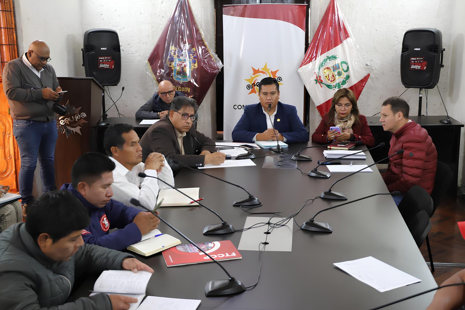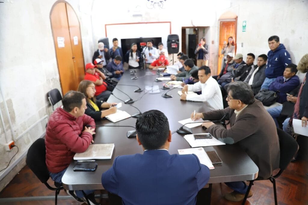 Durante la reunión realizada en las instalaciones del Consejo Regional de Arequipa (CRA), participaron representantes de los sindicatos de las ocho provincias encabezados por el secretario general Alfredo Phuno Ccala, así como los consejeros Osías Ortiz Ibáñez, Antonio Llerena Salas, Juan Carlos Huanca Molero, César Huamantuma Alarcón, Marleny Arminta Valencia, Yessenia Choquehuanca Cruz, Natividad Taco Cueva y el propio Aaron Maldonado López.