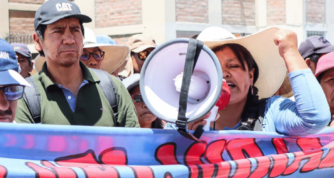 Con pancartas y megáfonos en mano, los vecinos de 32 pueblos jóvenes del distrito de Sachaca marcharon hasta la sede de Sedapar para exigir el reinicio del Proyecto Integral de Agua y Desagüe, una obra paralizada desde hace dos años pese a haberse destinado presupuesto y materiales para su ejecución.