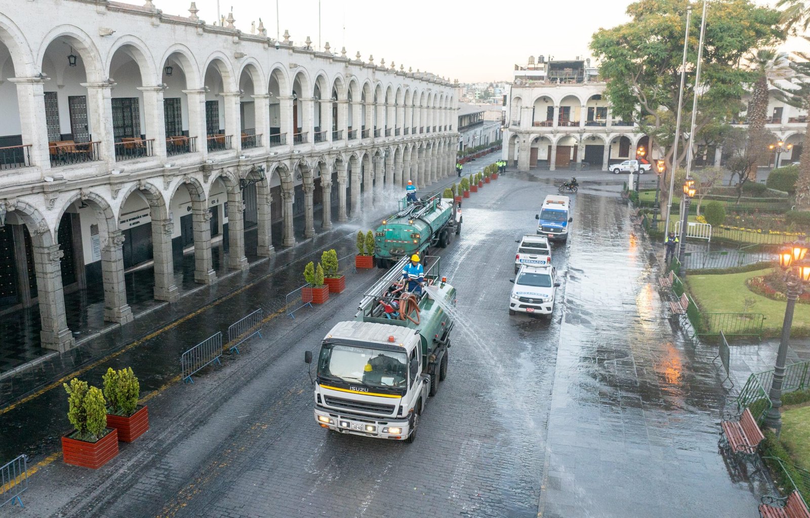 El operativo, desarrollado con apoyo de la Policía Nacional, contempló acciones coordinadas entre diversas áreas municipales. Desde temprano, personal de limpieza, fiscalización, gestión ambiental y serenazgo inició el enmallado y protección de áreas verdes y monumentales en la Plaza de Armas. A partir de las 5 de la tarde se restringió el tránsito vehicular. Y desde las 11 de la noche comenzó el retiro ordenado de los asistentes del cuadrilátero central.