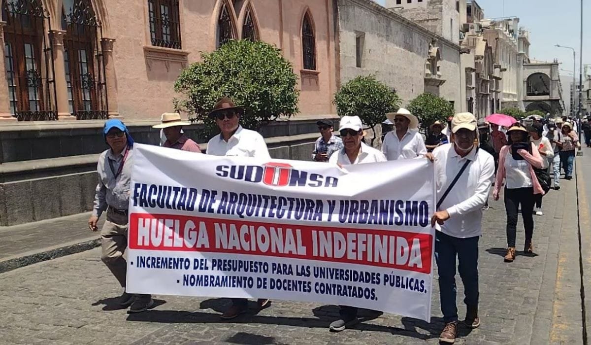 La huelga indefinida iniciada este lunes 10 de noviembre por docentes universitarios en todo el país afecta a la Universidad Nacional de San Agustín (UNSA) y deja, según el representante del Frente de Defensa Estudiantil, David Calizaya, a 26 mil estudiantes en situación de incertidumbre sobre el cierre del año académico.