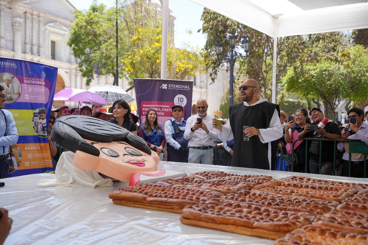 La emblemática guagua de noviembre volvió a ser el centro de atención en la Plaza de Armas de Arequipa, donde estudiantes del Instituto Stendhal trabajaron por más de tres días para dar vida a una pieza de pan dulce de ocho metros con el rostro de “Coquito”. La Municipalidad Provincial organizó el bautizo simbólico, que atrajo a cientos de asistentes y rindió homenaje a Everardo Zapata, autor del libro que marcó la alfabetización de generaciones.