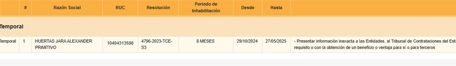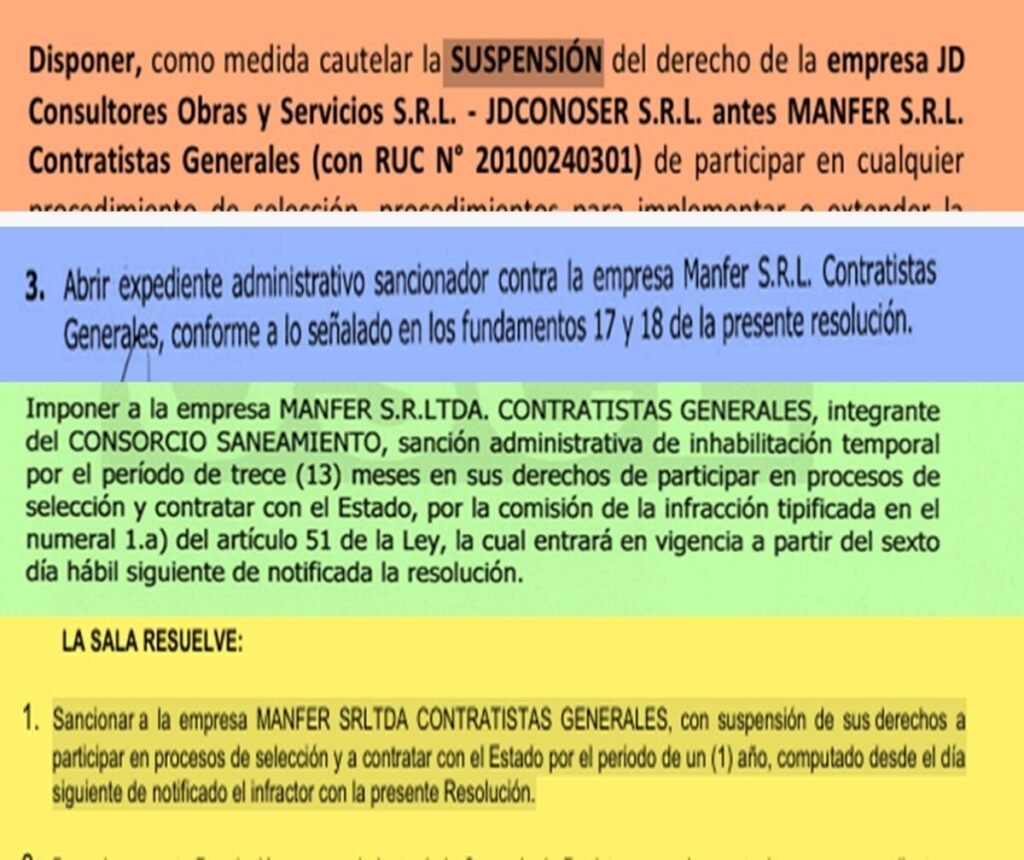 La empresa no es desconocida para el Organismo Supervisor de las Contrataciones del Estado (OSCE). Su historial registra al menos seis inhabilitaciones y procesos sancionadores, aunque ha logrado continuar contratando mediante cambios de nombre y reorganizaciones.