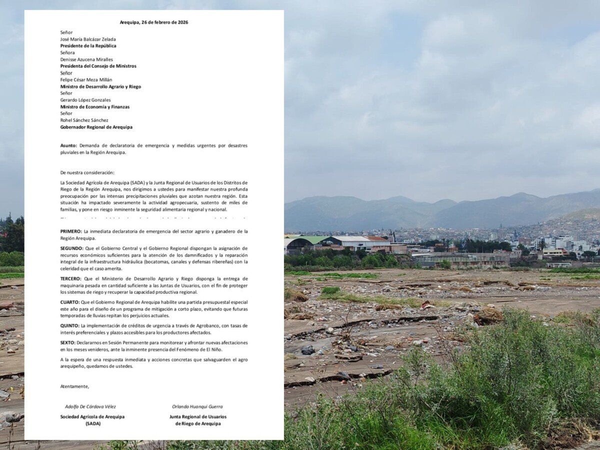 La Sociedad Agrícola de Arequipa (SADA) y la Junta Regional de Usuarios de los Distritos de Riego de la Región Arequipa solicitaron al Gobierno Central y al Gobierno Regional la declaratoria inmediata de emergencia del sector agrario y ganadero, debido a los severos daños ocasionados por las intensas precipitaciones en la región.