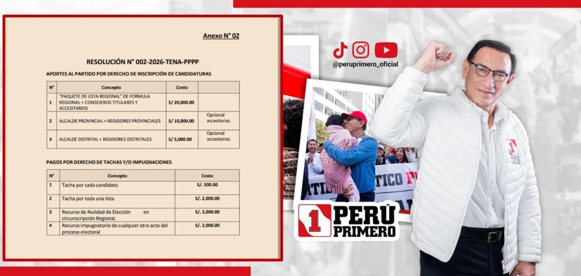 Información de fuente propia y chats, al cual tuvo acceso Diario Revelación, revela que el partido político Perú Primero que impulsó el ex presidente de la república, Martin Vizcarra, ya puso una tarifa que llama mucho la atención, el cual se evidencia en la siguiente imagen:
