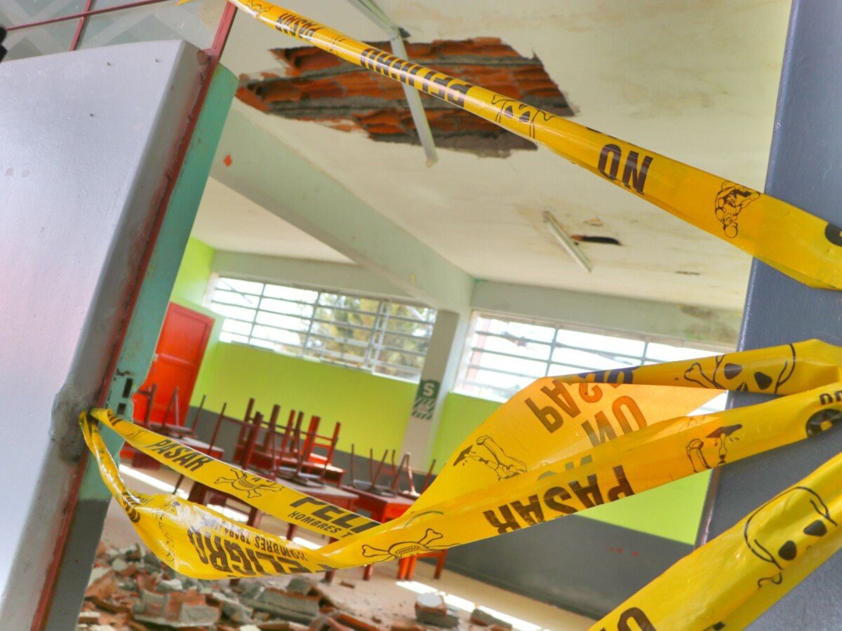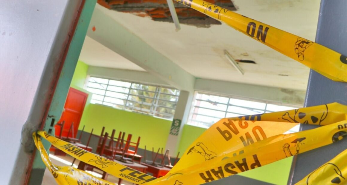 La medida se adoptó tras una inspección que evidenció daños severos en el pabellón principal. “Se tomó la decisión de declarar inhabitable el segundo piso de este pabellón, porque el techo podría colapsar en cualquier momento”, se advirtió, luego de que la caída de concreto dejara expuestas las viguetas y evidenciara el avanzado deterioro de la infraestructura.