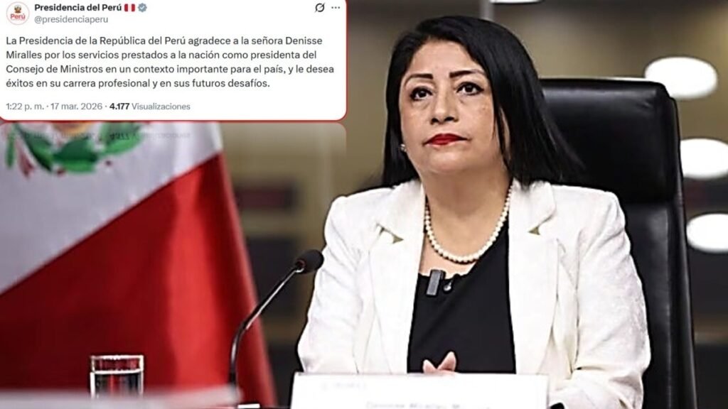La crisis política en el Ejecutivo se agudizó este martes 17 de marzo tras la renuncia de Denisse Miralles, quien permaneció solo 21 días en el cargo en la Presidencia del Consejo de Ministros (PCM), apenas un día antes de que su gabinete se presentara ante el Congreso de la República, para solicitar el voto de confianza.