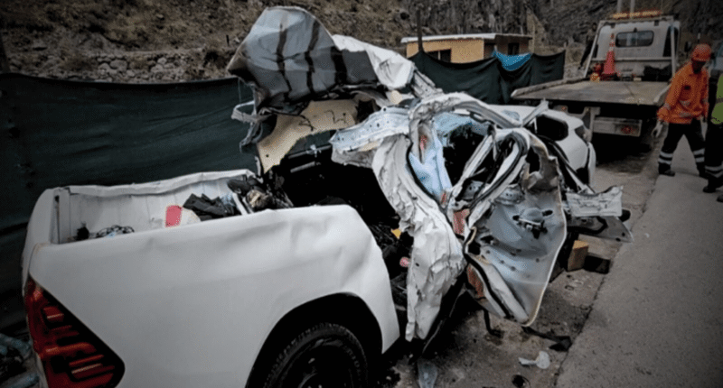 El accidente se registró en el kilómetro 98 de la Carretera Central en el sector de Cacray, en San Mateo de Huancho en la provincia limeña de Huarochirí. Una roca de gran tamaño se desprendió del cerro y cayó sobre una camioneta.