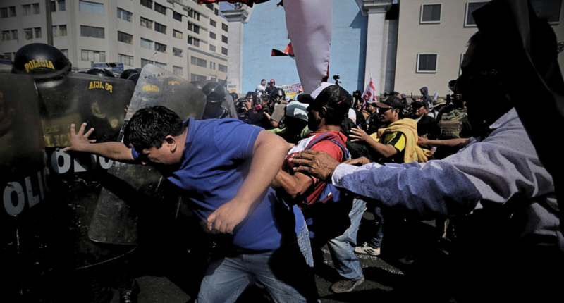 En los alrededores de la sede del Foro APEC 2024, en San Borja, se registró un violento enfrentamiento entre policías y manifestantes. Los ciudadanos, intentaron superar el cerco policial y fueron dispersados con gases lacrimógenos.