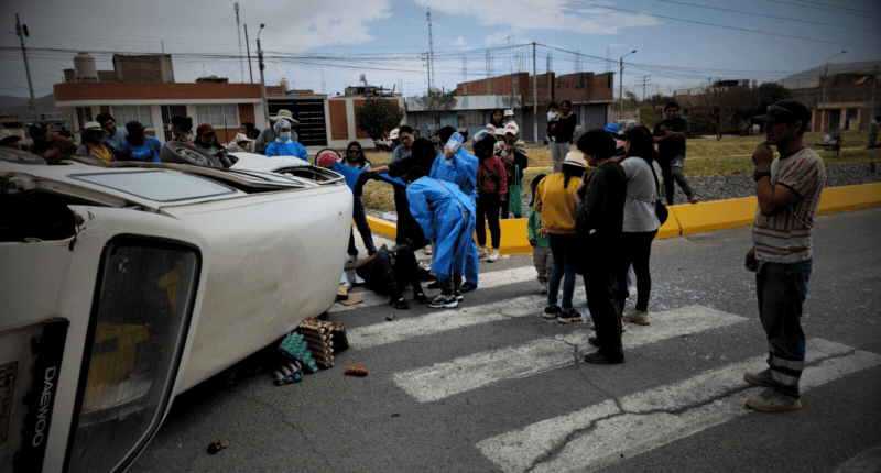 Repartidor de productos avícolas quedó gravemente herido tras ser impactado por un auto en el Asentamiento Humano Horacio Zeballos Games. Vecinos rescataron al conductor en medio de los fierros retorcidos y luego el personal de salud lo trasladó a un hospital.