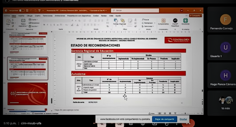 Arturo Zea Manrique, jefe del OCI, presentó datos que ya habían sido revelados en julio de este año. Los informes incluyen inhabilitaciones de funcionarios y pérdidas económicas que suman 20 millones de soles en Arequipa.