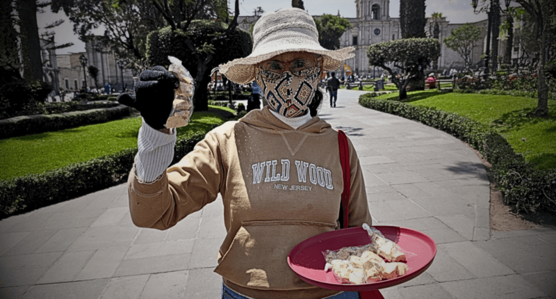 La comerciante preserva la tradición de las melcochas artesanales endulzando paladares y corazones. Desde hace 30 años, elabora estos productos dulces y los distribuye como ambulante en el Centro Histórico de Arequipa.