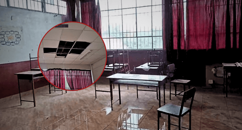 Más de mil estudiantes podrían verse afectados por filtraciones en las aulas del colegio Mayta ápac, en Cayma, debido a las lluvias. Padres piden acciones urgentes.