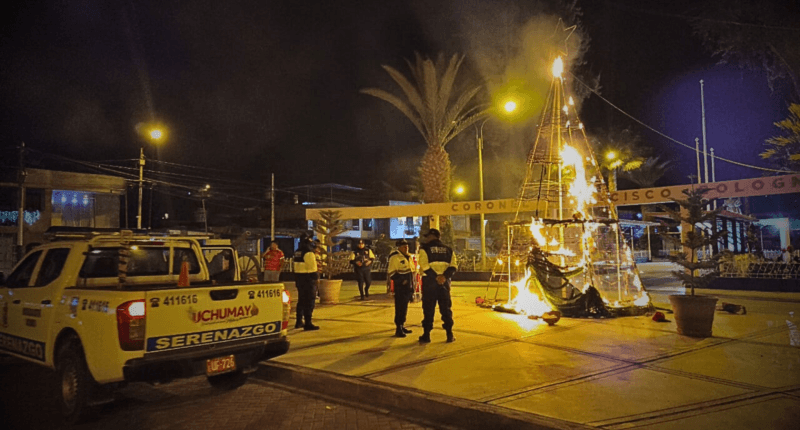 Un incendio en la plaza de Congata arrasó con un árbol navideño debido al uso irresponsable de pirotécnicos. Dos menores de edad estaban manipulación cuetes lo que habría provocado el incendio.