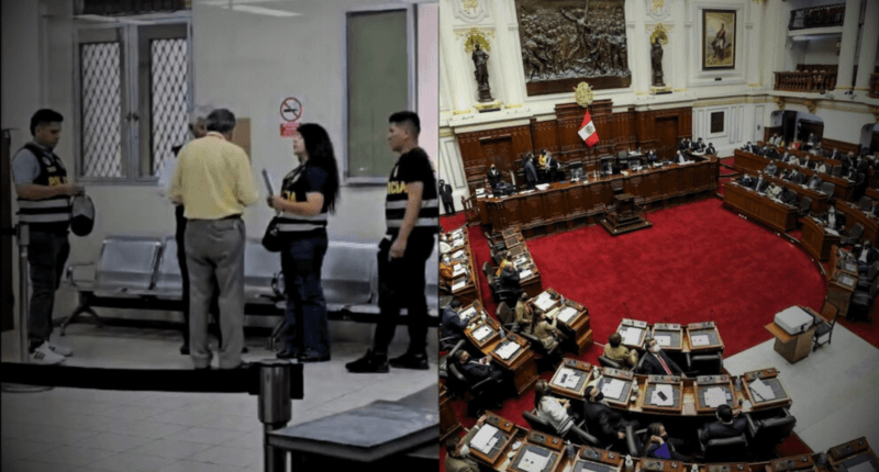 Agentes de la PNP y Fiscalía ingresaron al Congreso durante una conferencia de Eduardo Salhuana. El caso involucra a altos funcionarios en una presunta red de explotación sexual.