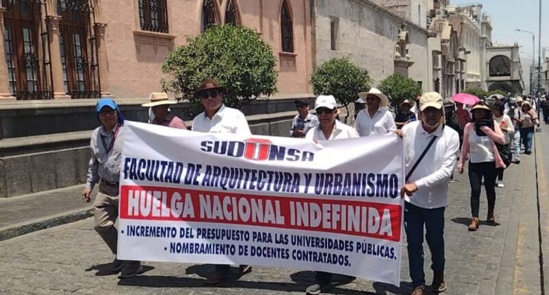 La huelga indefinida de docentes universitarios mantiene paralizadas las clases en la Universidad Nacional de San Agustín de Arequipa, afectando a más de 26 mil estudiantes. El frente estudiantil exige al Gobierno atender las demandas del magisterio para no extender el año académico hasta enero.