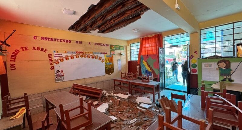 La infraestructura del plantel Livia Bernal de Baltazar colapsó tras la filtración de agua. Hay daños materiales en un aula, que ya ha sido declarada inhabitable. Su reconstrucción todavía está en veremos