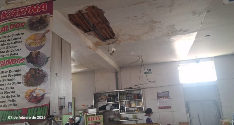El desprendimiento parcial del techo del comedor N.º 1 del Mercado San Camilo podría obligar a reubicar temporalmente a 15 comerciantes mientras ingenieros revisan la estructura y planifican las reparaciones.