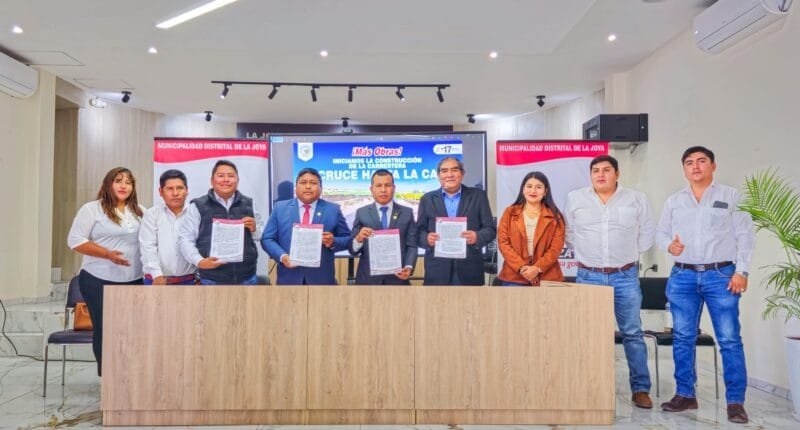 La Municipalidad de La Joya firmó un convenio por más de 16 millones de soles para renovar la carretera El Cruce–La Cano, principal vía de acceso para decenas de pueblos agrícolas. El contrato fue adjudicado al Consorcio San Martín y tendrá un plazo de ejecución de 330 días.