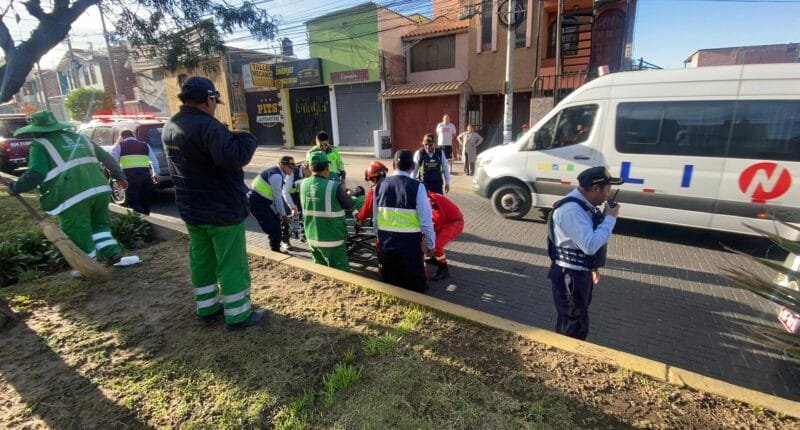 Una trabajadora de limpieza de la Municipalidad de Paucarpata fue atropellada por un conductor que se dio a la fuga. La víctima, de 54 años, sufrió una grave lesión en la pierna izquierda y fue trasladada de emergencia. La Policía busca al responsable. Foto: Radio Melodía.